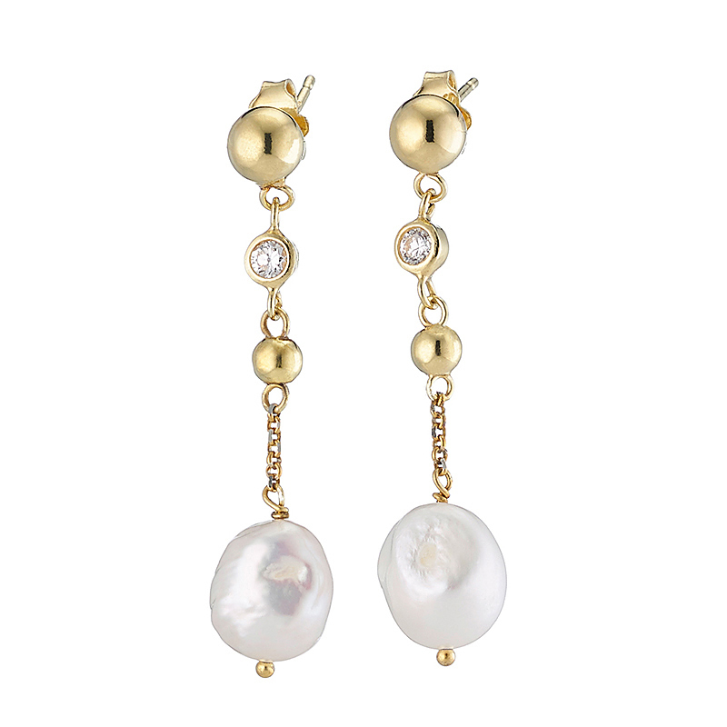 A gorgeous pair of earrings, from the 'Icon Coquette' collection, crafted from 925 gold-plated sterling silver, that promise lasting sparkle every time you choose to wear them. Decorated with fresh water pearls and white crystals for added sparkle. Elegant and ideal for all hours.