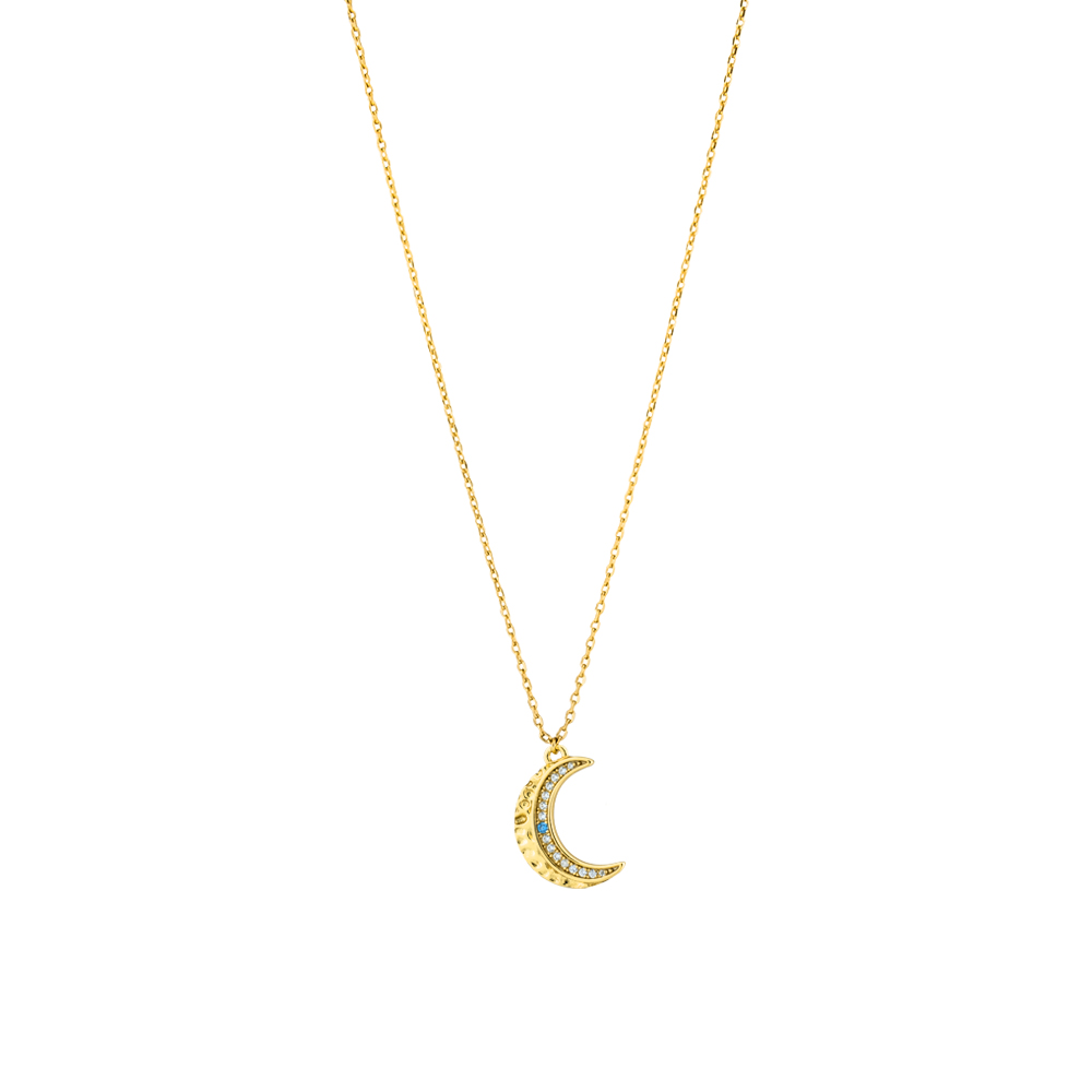 Necklace made of 925 gold-plated sterling silver with a thin chain and a carved surface, which features a wonderful element with a design depicting a crescent moon.
